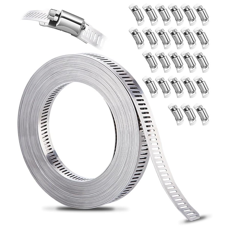 - Package includes: with a 10 m long metal strap and 25 fasteners, our adjustable clamp offers flexibility in sizes and is suitable for pipes of different lengths. If you have any questions about our product, please do not hesitate to contact us and we will reply you as soon as possible.