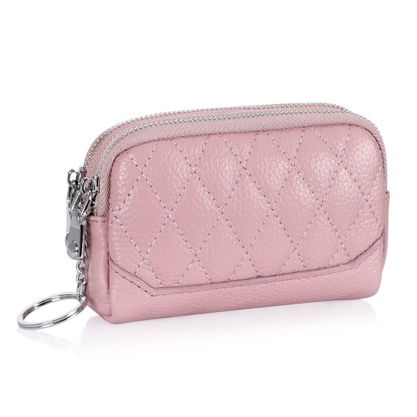 XEYOU Small Coin Purse Pouch Wallet Genuine Leather Change Coin Purse Holder for Women with Keychain Ring, Light Pink, Small