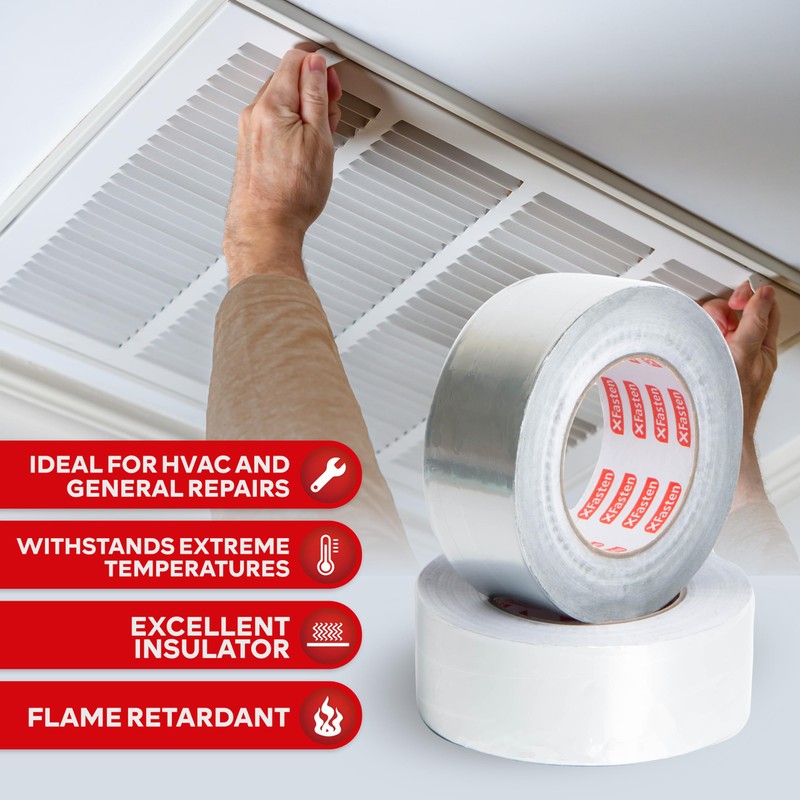 XFasten Aluminum Foil Tape for Ductwork 2 Inch x 55 Yard 6-Pack 3.6mil Aluminum Tape for Ductwork Heavy Duty Dryer Vent Tape Foil and Seal HVAC Tape for Ducts, HVAC Duct Tape