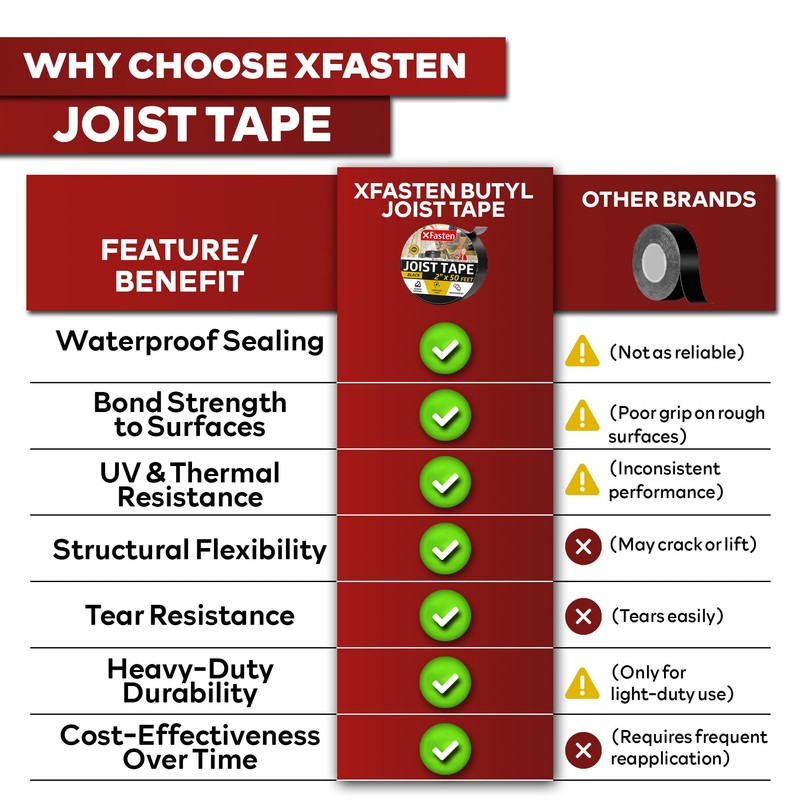 XFasten Butyl Joist Tape for Decking, 2 Inch x 50 Feet (12-Pack, 600ft) – Waterproof and Anti-Corrosion Deck Flashing Tape for Joists, Weatherproof Butyl Sealant for Deck Protection and Longevity