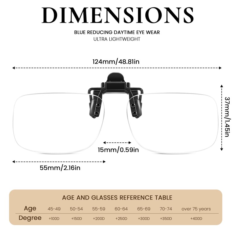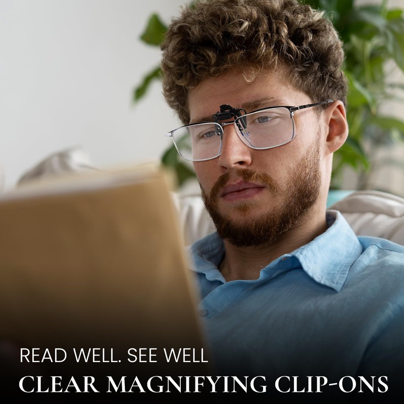 - Universal Compatibility: Designed to fit over most prescription glasses, these clip-on readers are perfect for both men and women. These magnifying clip-on eyeglasses are great for blocking blue light from phones, computers, TVs, IPADs etc., consequently reducing dry eyes, eyelid strain and fatigue.
