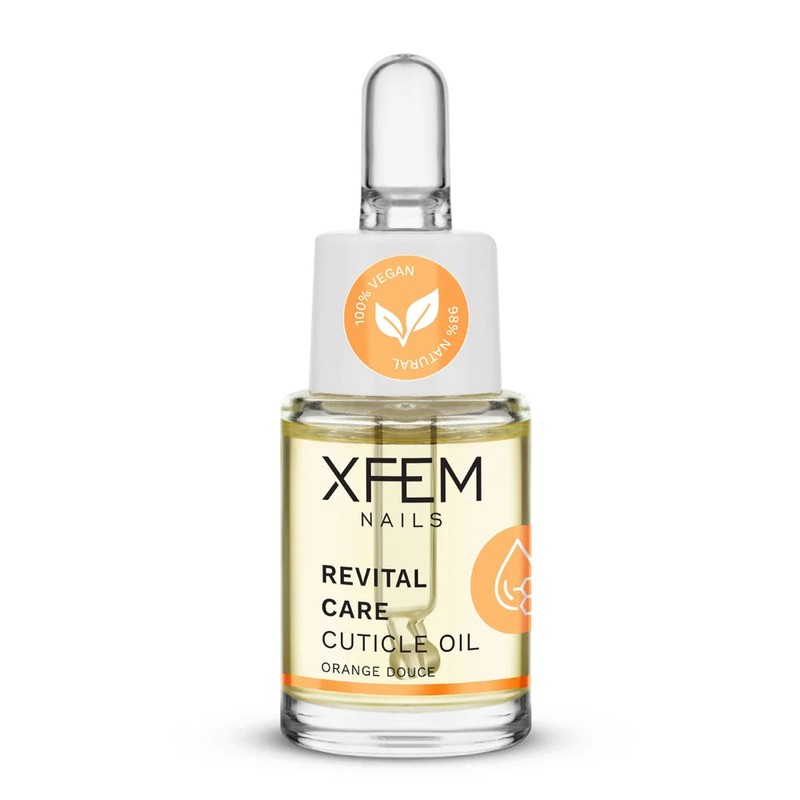 The XFEM Cuticle Oil Revital Care Orange Douce is the must-have for brittle, weak nails and dry cuticles! With a carefully formulated blend of 98% natural ingredients, this oil nourishes, strengthens, and revitalizes your nails, while the sweet, fresh scent of orange provides a refreshing experience.