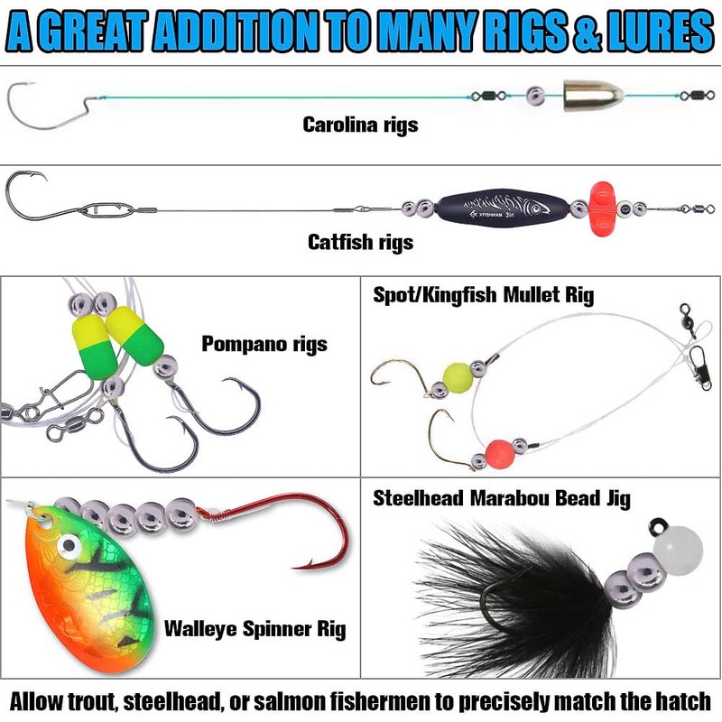 - Versatile Bead Collection: Explore a diverse range of Fishing Beads by XFISHMAN, suitable for various rigs and fishing scenarios, whether you're targeting trout, salmon, catfish,or walleye.