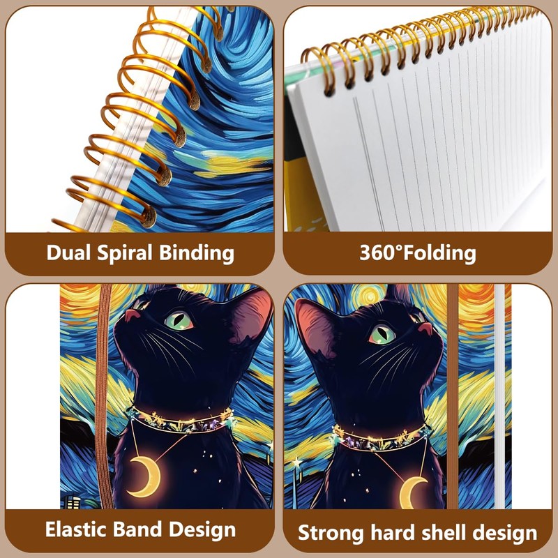XFN 2Pcs Spiral Notebook, Sky Cat College Ruled Spiral Notebook, Multi Subject Notebooks, 120 Ruled Pages Hardcover Journals for Writing Travel Business Office, Cute Notebooks for Women