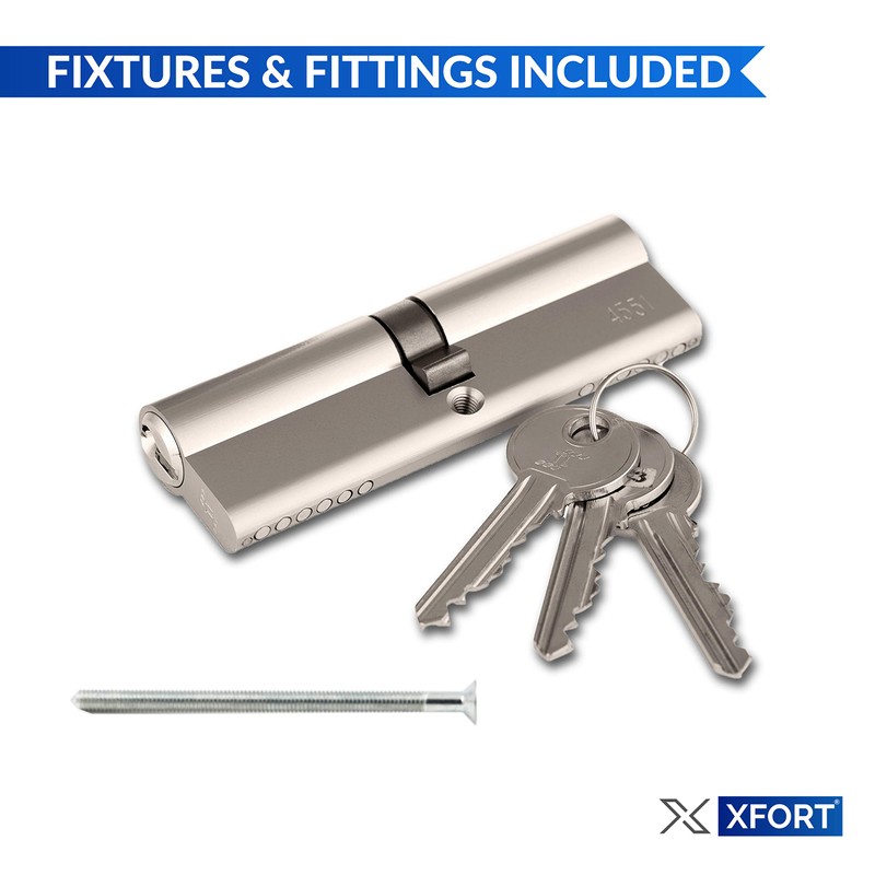 XFORT Chrom 40/40 Euro-Zylinderschloss (80mm), Euro-Türschloss mit 3 Schlüsseln, Anti-Bump, Anti-Drill und Anti-Pick Türschloss mit Schlüssel