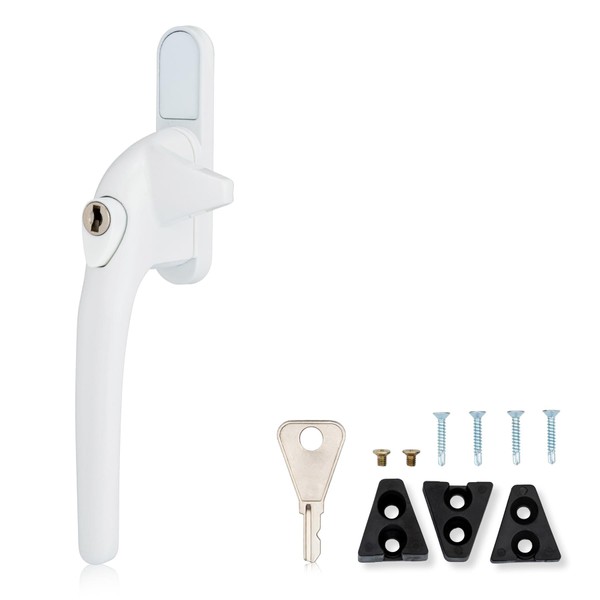 XFORT Locking Cockspur Window Handle Installation Kit in White, Left Hand UPVC Window Handle Replacement, Lockable Window Lever