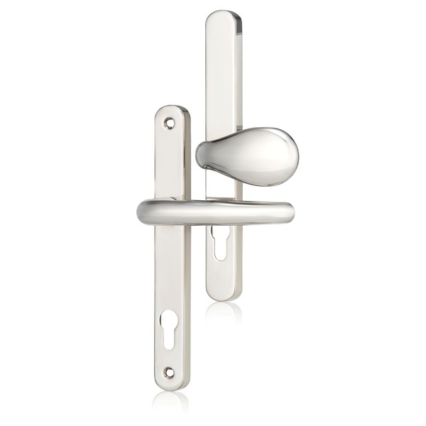 XFORT Uros Polished Chrome Offset UPVC Door Handle, (PZ 62/92mm, Screw Hole Distance 211mm, 243mm Overall) Aluminium Offset Lever/Pad, UPVC Door Handle
