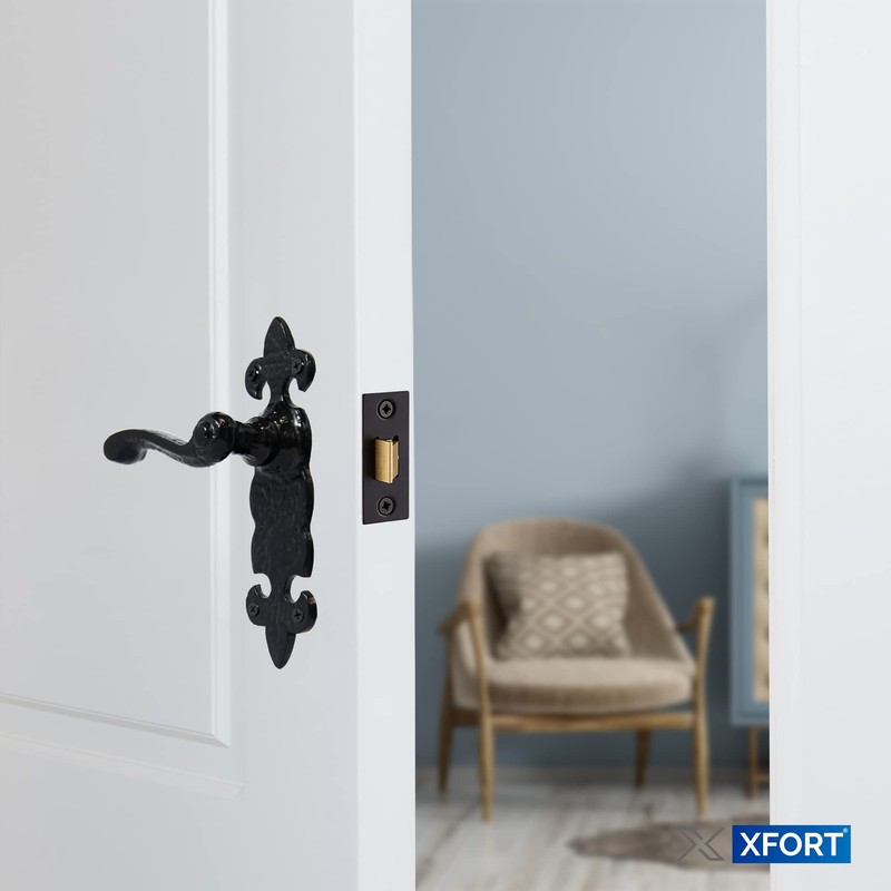 XFORT XFORT Smithy's Range Fleur De LYS Lever Latch Solo Black Antique Door Handles, Cast Iron. Rustic Latch Door Handles Set for Internal Wooden Doors.