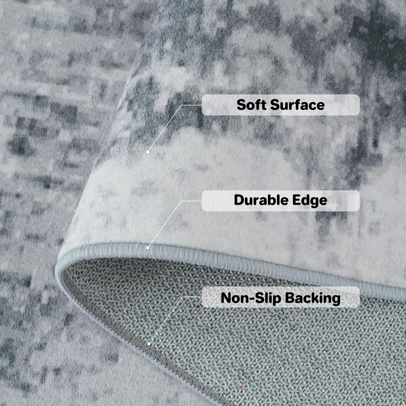 Xfrog Abstract Area Rug Modern Washable Small Rug Entryway Rug for Living Room Soft Short Pile Floor Carpet Door Mat Non Slip Grey Rug for Entrance Kitchen Bathroom Hall 60x110CM