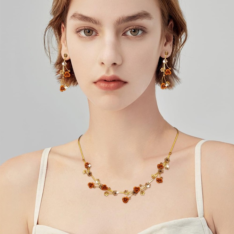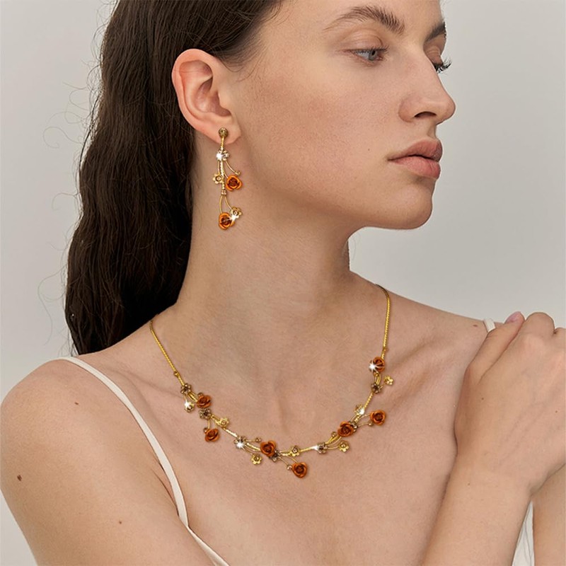 - FASHION DESIGN This jewelry set consists of a necklace and a pair of earrings with pendant. The whole set features a delicate, sweet rose petal design that shines beautifully and combines elegance with splendor.