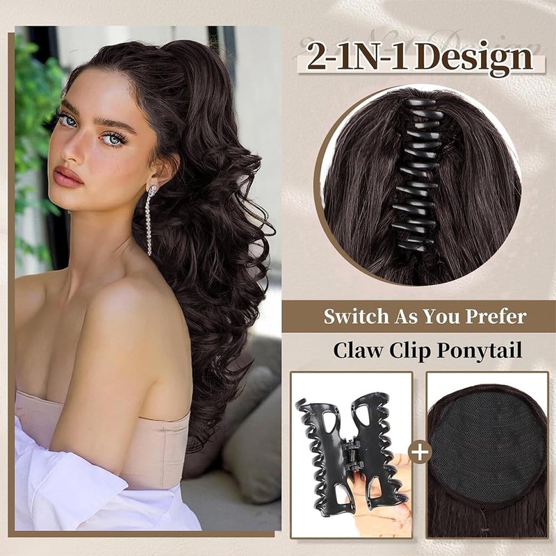 - EXQUISITE DESIGN This ponytail extender captivates with its elegant and natural wavy design, which instantly adds volume and length to your hair. The large, curly pear flowers provide a glamorous look that is perfect for special occasions.