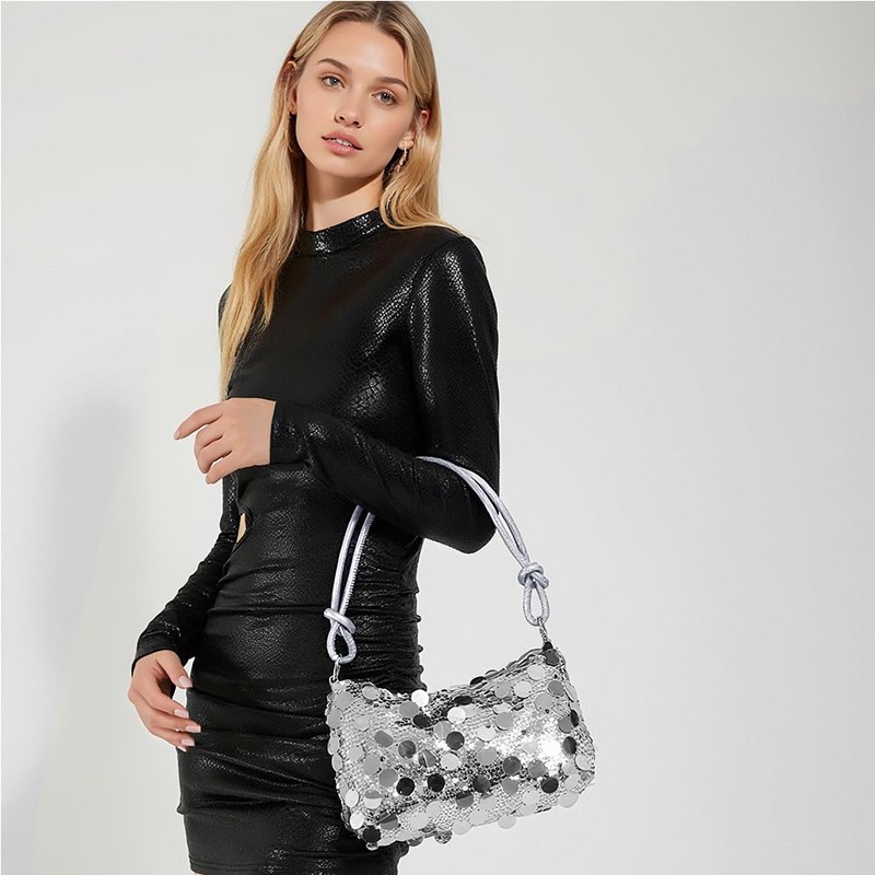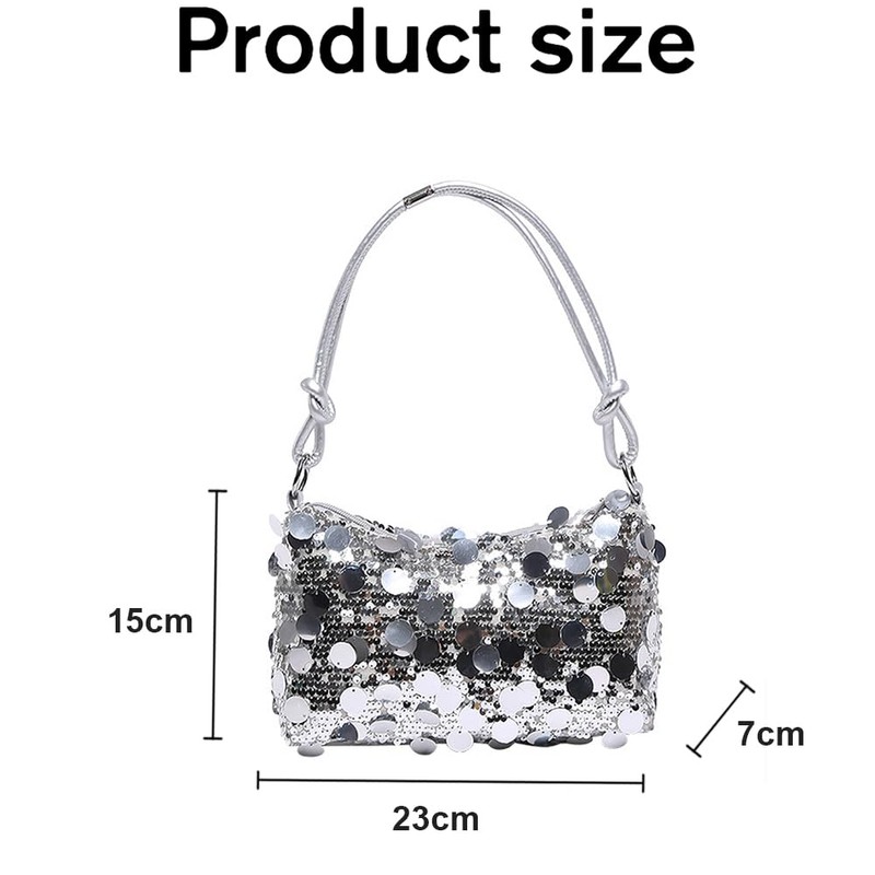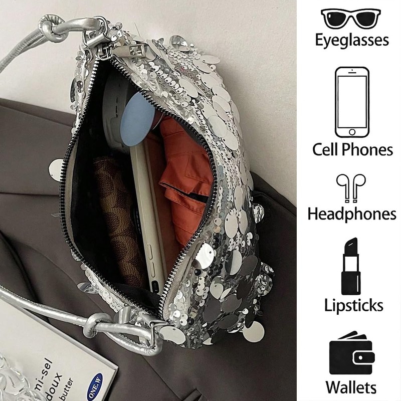 • FASHION STYLE This small bag for women combines trendy elements with classic chic. The silver sequins add a modern touch to the bag, while the compact size makes it a versatile accessory to match many outfits.