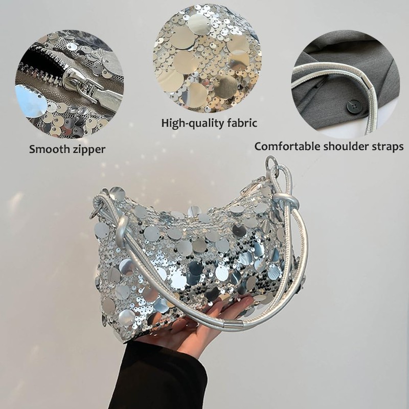 • EXQUISITE DESIGN This handbag for women features eye-catching silver sequins design that sparkle with every movement for a glamorous appearance. Perfect for elegant evening events and parties where you want to be the focus.