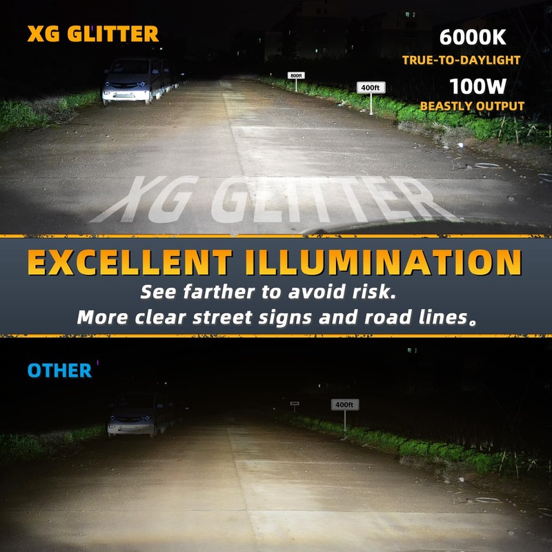 XG Glitter Headlights Fit for Ford Expedition 2019 Halogen Headlight Bulbs, 9005 High Beams H11 Low Beams h11 Fog Lights, High Power 6000K White Light, Pack of 6