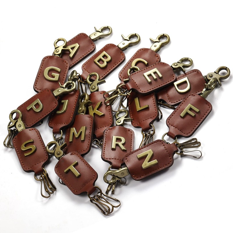 - Letter keychain : Initial letter keychain made of brown leather.These keychains make a beautiful accessory, easy to those hard to find keys, clip on car key, handbag, wallet and so on.