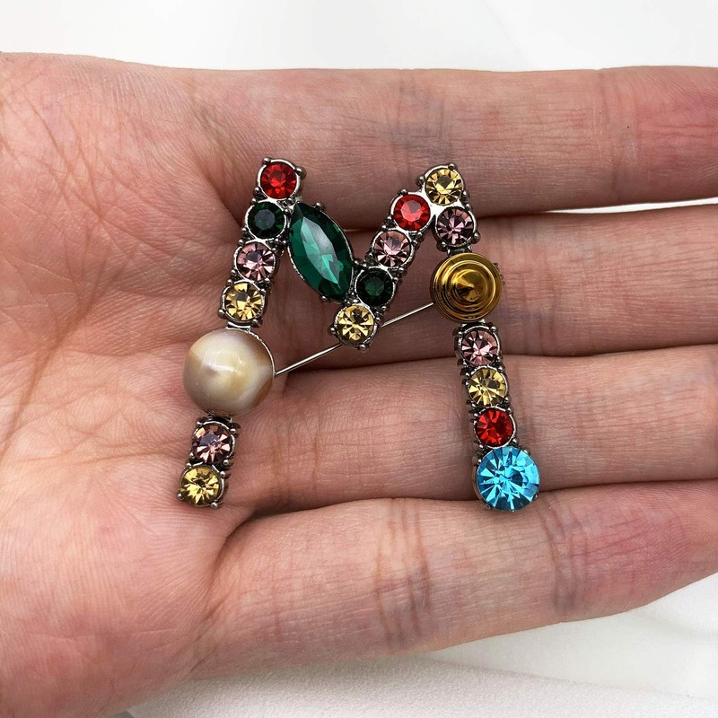 XGALBLA Letters M Plated Metal Stone Clear Colorful Crystal Lapel Pin Brooches Collar(Silver Tone)