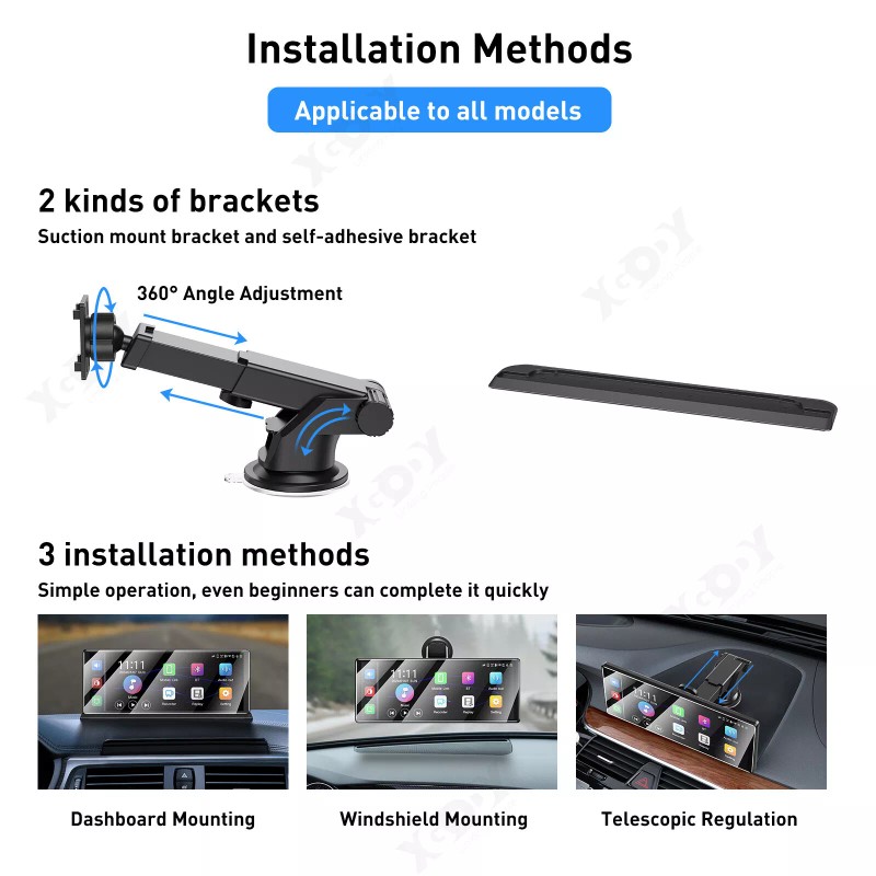 XGODY 11.3" 4K Dash Cam Touch Screen Car Stereo Portable Apple Carplay Android Auto
