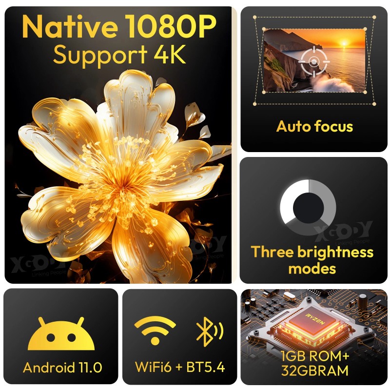 XGODY 25000LMS 4K FHD Smart Projector WiFi AutoFocus Video Home Theater 32GB US