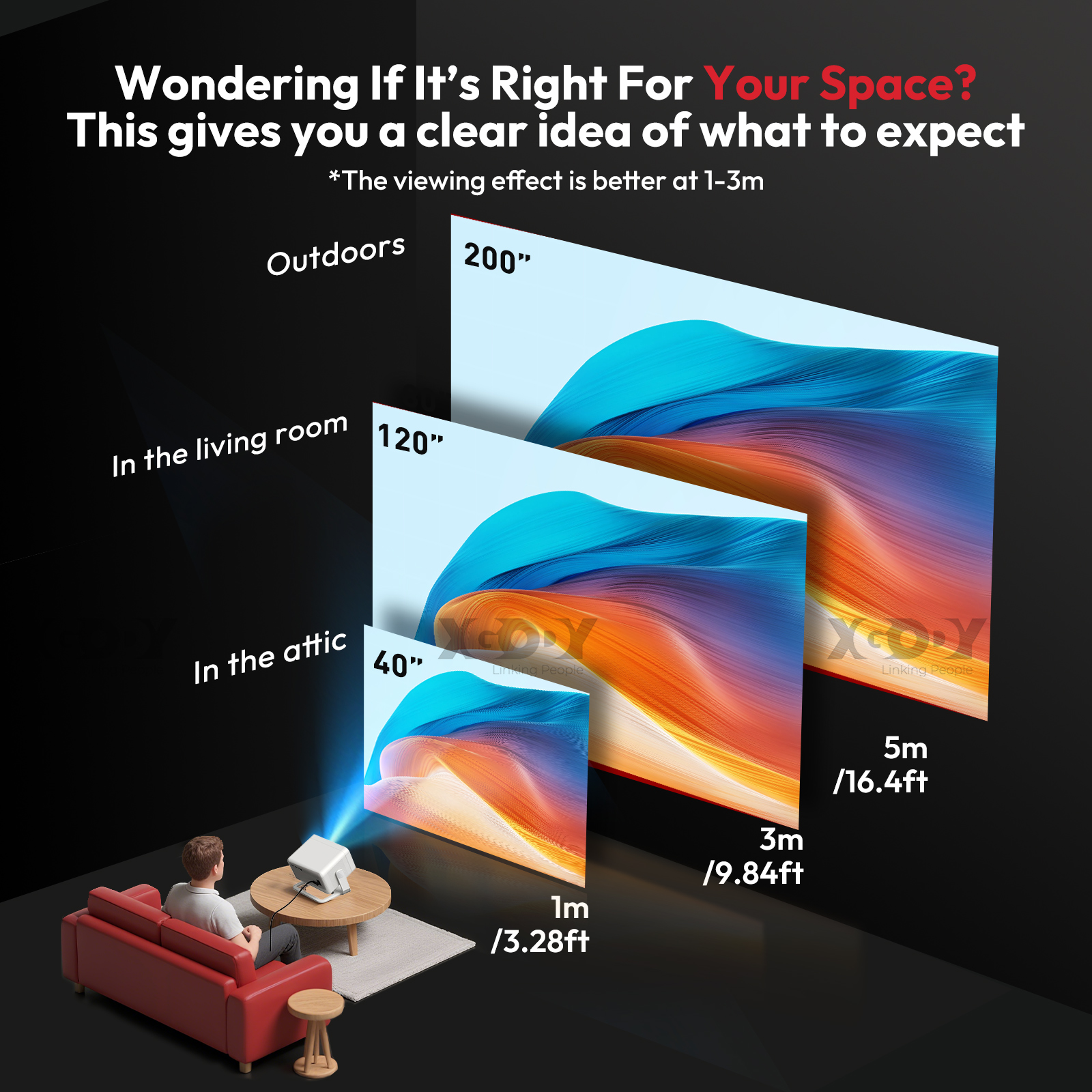 XGODY 4K HD 700ANSI Projector Bluetooth WIFI Home Theater Movie Whale Os 1080P