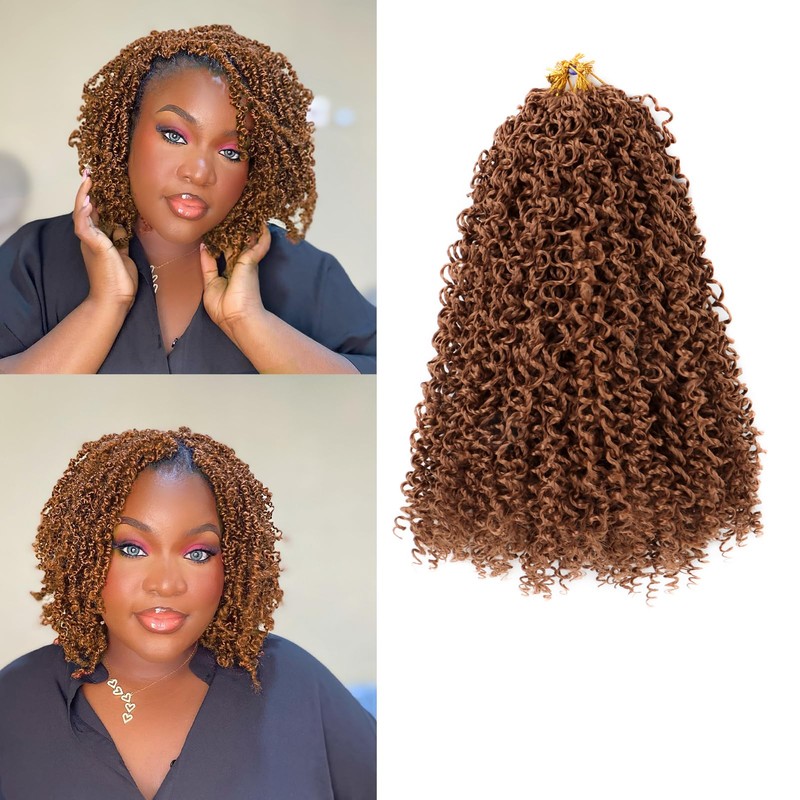XGY Hair 12 Inch Yanky Twist Crochet Hair Brown 8 Packs Short 30 Strands/PCS Pre-looped Mini Twist Hair Fluffy Bohemian Passion Twist Crochet Hair Boho Crochet Braids Synthetic (30#)