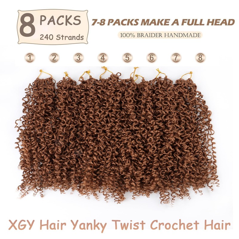 - ⭐Handmade Twist -- Yanky Twist Crochet Hair Is Made Of High Quality Synthetic Fiber Which Is Skin-Friendly And They Are All Handmade & Unique Pre -twisted Spring Twist Hairstyle. 8 packs/lot, 30 strands/pack, total 240 strands,usually 8-10 packs can full one head.