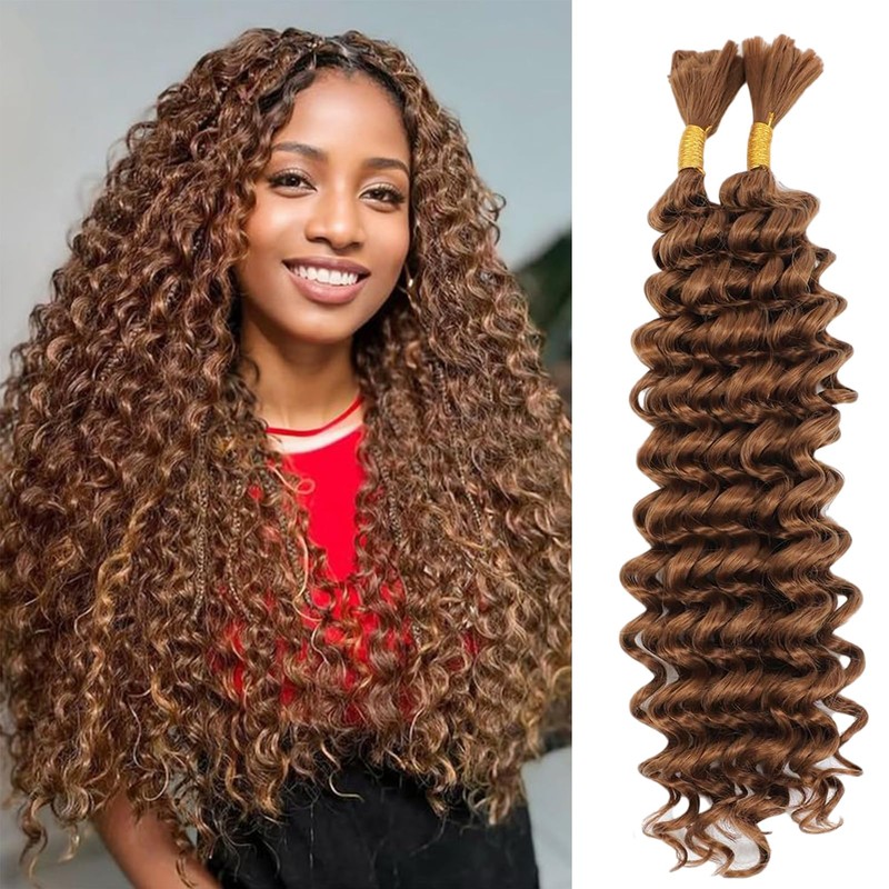 - đđHigh Quality Material -- This deep wave bulk braiding hair is made of premium heat-resistant synthetic hair, smooth and soft, the feeling and texture is similar with human braiding hair, and price more cheaper. It is really suitable for making boho braids.