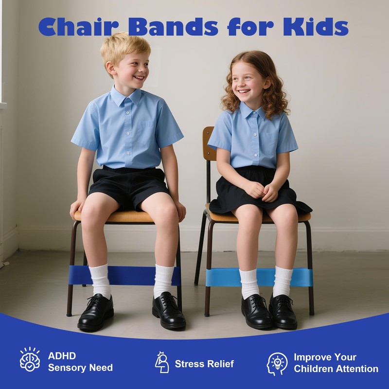 - BOOST FOCUS & REDUCE ANXIETY: These chair bands can enhance concentration and soothe fidgety feet. They are especially helpful for children with ADHD, autism, or hyperactivity, enabling them to channel their restless energy into subtle movements. Perfect for stress relief during study sessions or classroom focus aids, fostering patience and a peaceful learning environment