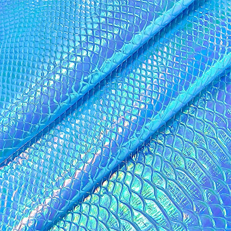 XHT 30 x 135 cm, Holographic Crocodile Leather, Iridescent Blue Crocodile Leather, Embossed Fabric for DIY Sewing Projects