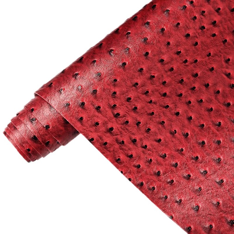 XHT 32x135cm Ostrich Texture Faux Leather Roll Solid PU Vinyl Synthetic Crafts Fabric for Leather Keychains Purse Wallets Making Upholstery Decoration (Red)