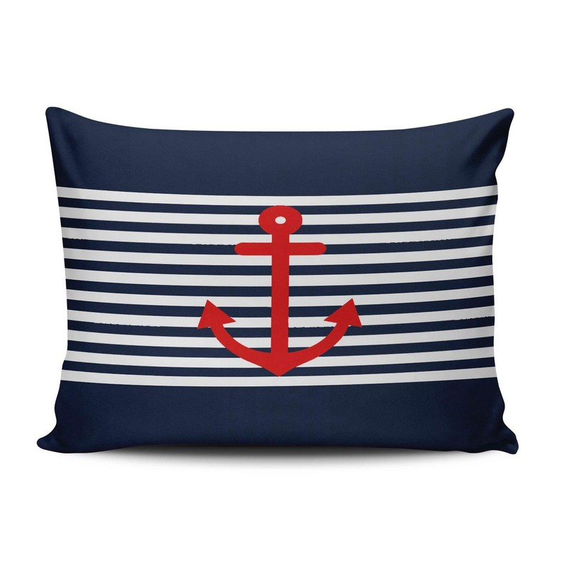 XIAFA Home Custom Pillowcase Red Anchor on Navy Blue Nautical Simple Decorations Sofa Throw Pillow Case Cushion Cover One Sided Printed Design Boudoir 12X16 Inch (Set of 1)