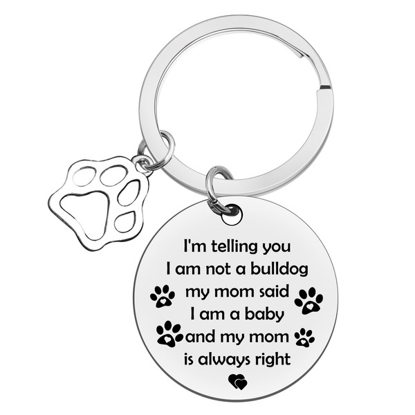 - Bulldog Gifts for Women: Engraved with “I'm telling you I am not a bulldog my mom said I am a baby and my mom is always right".Show your love for your pet with this keychain. It's sure to make you and your loved laugh.This keychain is also the perfect gift for a dog mom.