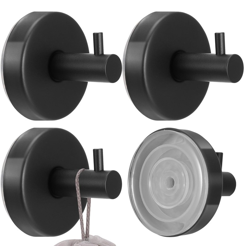Xialvyu Pack of 4 Suction Cup Hooks, Towel Hooks, No Drilling Hooks, Suction Cup Hooks, Bathroom, Kitchen, Clothes Hooks, Black