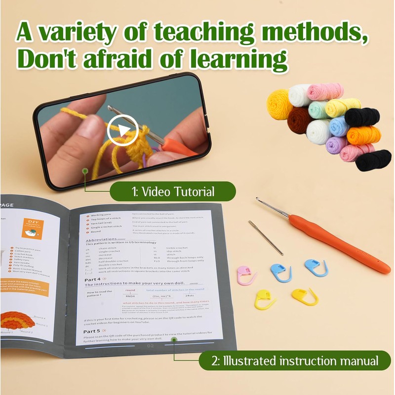 - Step-by-Step Learning with Video Tutorials: Our kit comes with clear, beginner-friendly video tutorials that guide you from the basics to completing your first crochet project. Follow along with ease and confidence, no matter your skill level.