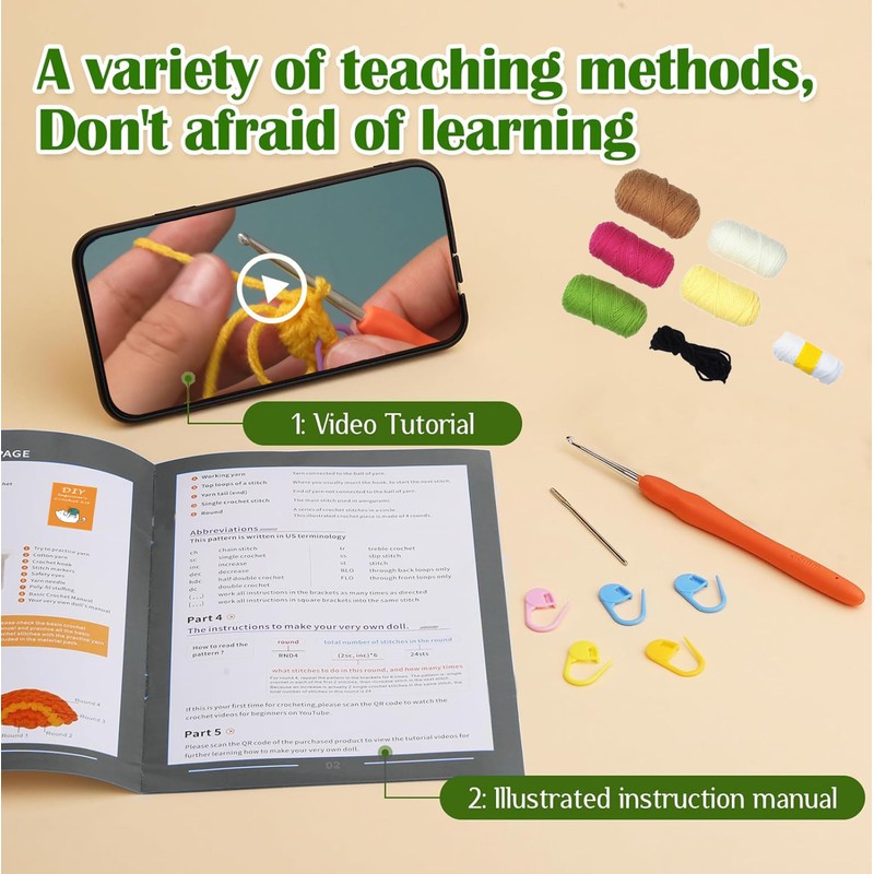 - Step-by-Step Learning with Video Tutorials: Our kit comes with clear, beginner-friendly video tutorials that guide you from the basics to completing your first crochet project. Follow along with ease and confidence, no matter your skill level.