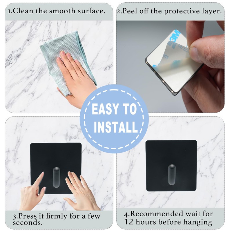 - 【 Premium Steel & Strong 10lbs Hold 】 Crafted from durable steel with a scratch-resistant matte black finish, these hooks resist rust and corrosion even in humid bathrooms. The industrial-strength adhesive securely holds up to 10 lbs per hook.