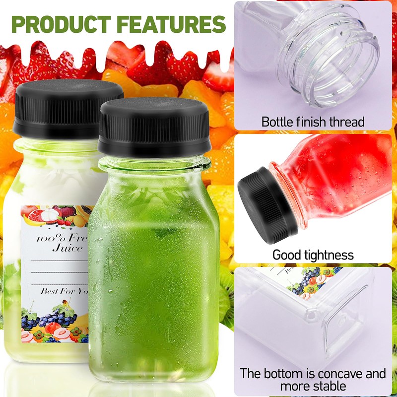 - Good sealingSmall juice bottles are equipped with screw caps, and the empty bottle mouth has a fine thread design to prevent leakage, making the sealing better and can be opened and closed easily.