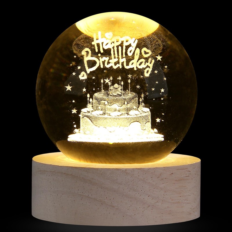 XIANNVXI 3D Happy Birthday Crystal Ball Paperweight Birthday Gifts for Women Men Birthday Presents Friend Birthday Gifts Crystal Lamp Sphere Lamp