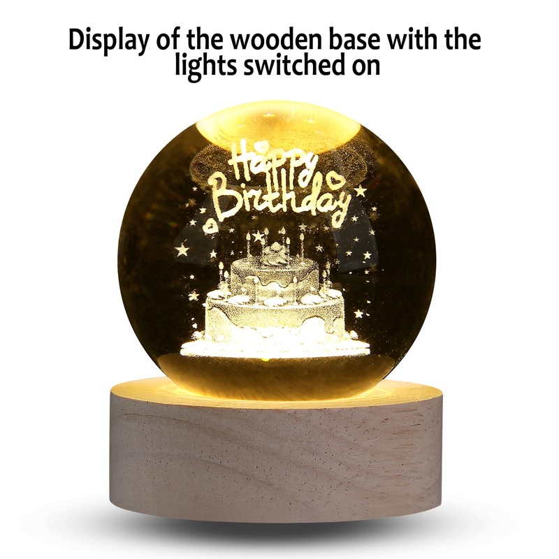 - [HAPPY BIRTHDAY GIFTS FOR WOMEN MEN/BIRTHDAY PRESENTS] - The pattern in the glass ball shows a birthday cake and happy birthday wishes.The happy birthday/birthday cake crystal ball makes a wonderful gift for birthdays, Mother's Day, Christmas, Father's Day, etc. Imagine how surprised he or she will be when they open this gift.