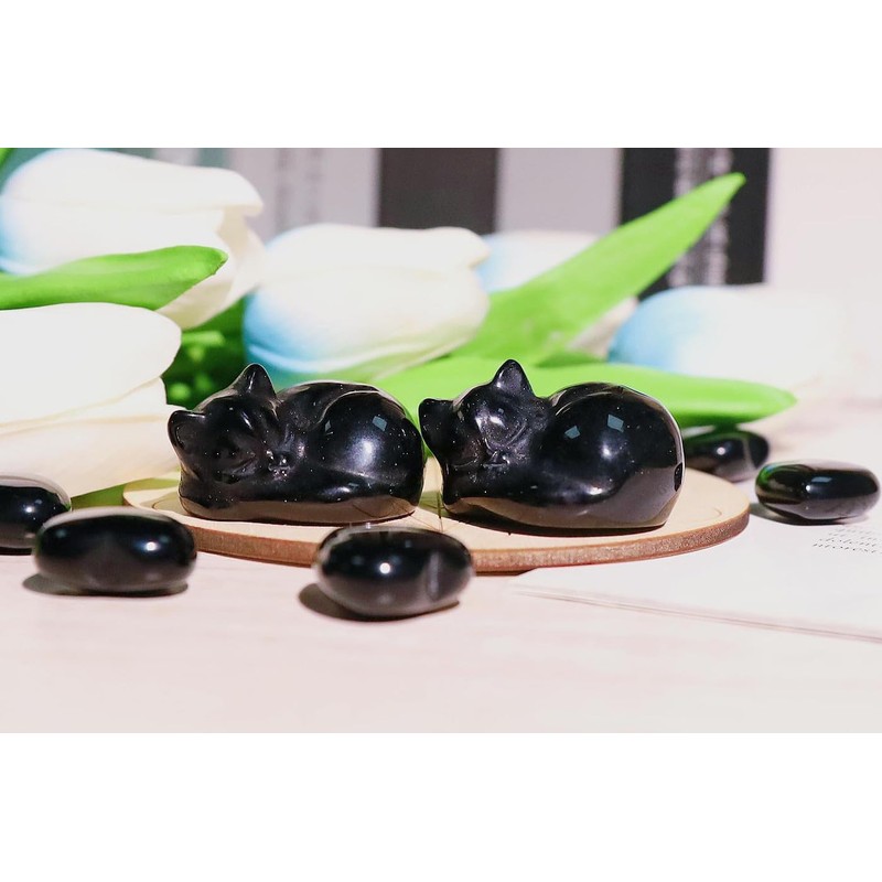 - Specifications: 1 x Kawaii cat decoration. Size (approx. ): 1.6 inches. Weight: 37 g/piece. Obsidian crystal sleeping cat statue is polished and very beautiful, we specially choose a velvet bag and an exquisite gift box to wrap it, perfect cat gifts for women, for cat lovers.