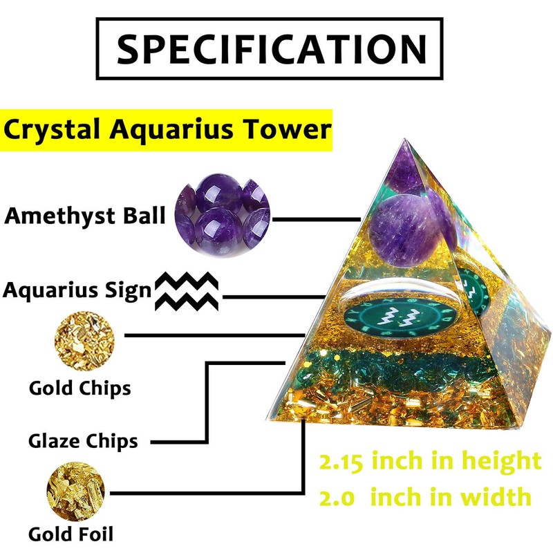 - Spiritual gifts: This pyramid is made of natural crystals and natural resin, a unique, wonderful Aquarius pyramid gift for your family, friends or loved one for Aquarius birthday to bring him/her health and happiness