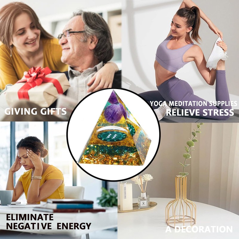 - Healing crystal pyramid: The gemstone pyramid that absorbs negative energies in the room and converts it into positive energies, making it the best meditation material and the perfect decoration. Crystal pyramid harmonises your energies and aligns your chakras perfectly and helps with yoga meditation, balancing the chakras and reiki healing to help you come to rest and feel calm.