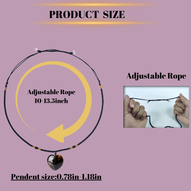 - Meaningful Crystal Necklaces:Each heart necklace is made of crystals of different materials and has different meanings. Tiger Eye Stone inspire people more courage, bring confidence, active vitality and health. It can also strengthen the human immune system and promote blood circulation,very useful for yoga meditation.