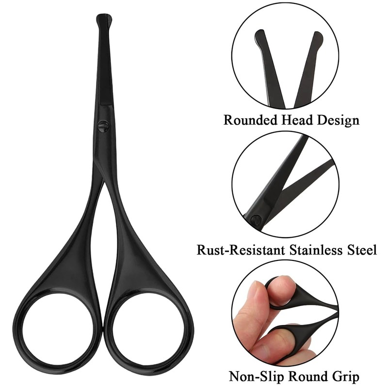 • 🔧 5-in-1 Multi-Purpose Hair Scissors From nose hair removal to eyebrow shaping and facial hair trimming, one tool handles all grooming needs – perfect for dry skin, eyebrows, eyelashes, mustache, and beard detailing in delicate areas. Rounded safety tips prevent cuts, while surgical-grade blades effortlessly handle stubborn beard hairs and ear hair removal.