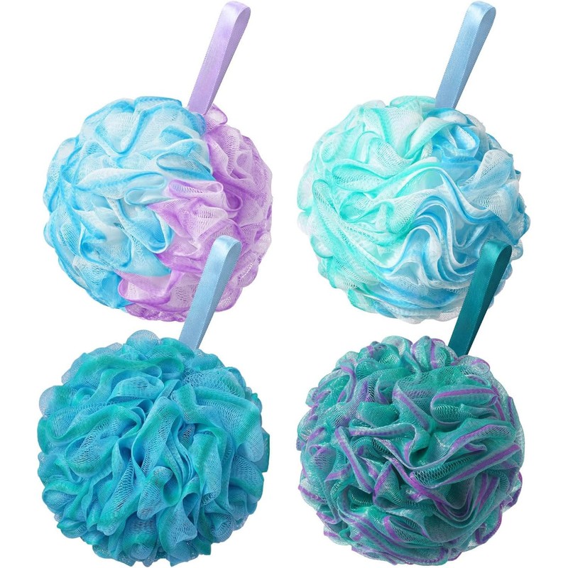 XIANZANDER 4 PCS Shower Puff Loofahs,Loofah Sponge 75g Extra Large,Scrunchie Mesh Pouf Bathroom Sponge Skin Exfoliating,Soft Body Scrubber Bath Sponge for Women and Men