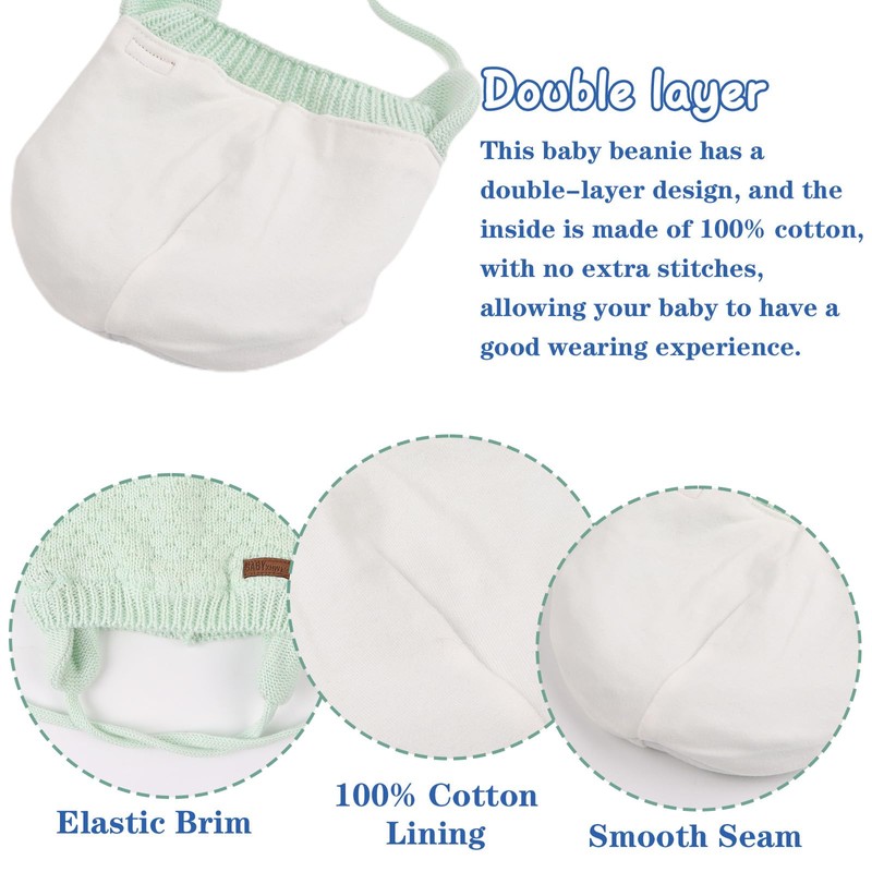- Cute Bear Ears:Super cute earflap hat keeps little head and ears toasty warm.Breathable material makes our knitted infant beanies not only cute but also comfortable.