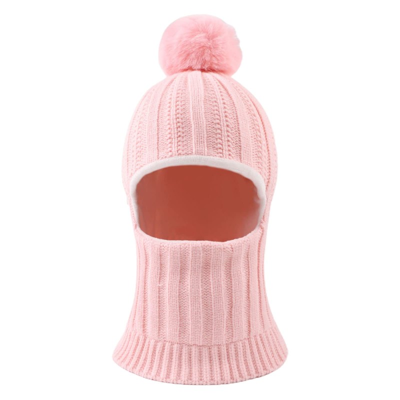 XIAOHAWANG Baby Winter Hat Boys Children's Hats Winter Polar Fleece Windproof Cold Protection Knitted Hat Boys Warm Beanie with Bobble for Children Baby, Light pink