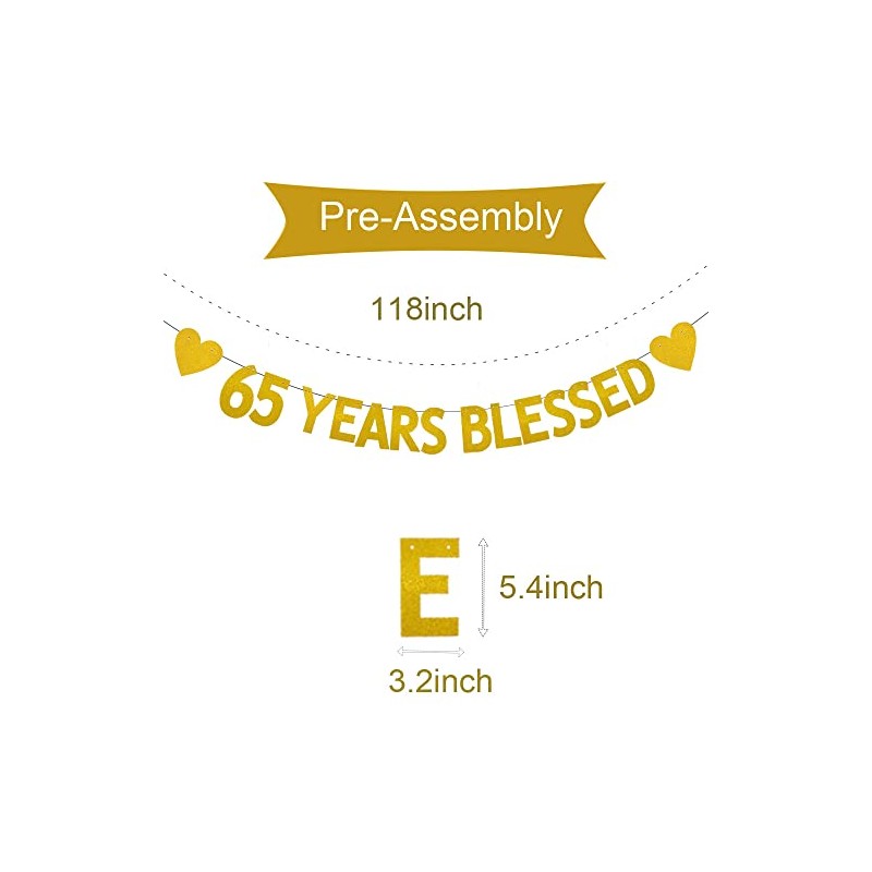 XIAOLUOLY Gold 65 YEARS BLESSED Glitter Banner,Pre-Strung,65th Birthday/Wedding Anniversary Party Decorations Bunting Sign Backdrops,65 YEARS BLESSED