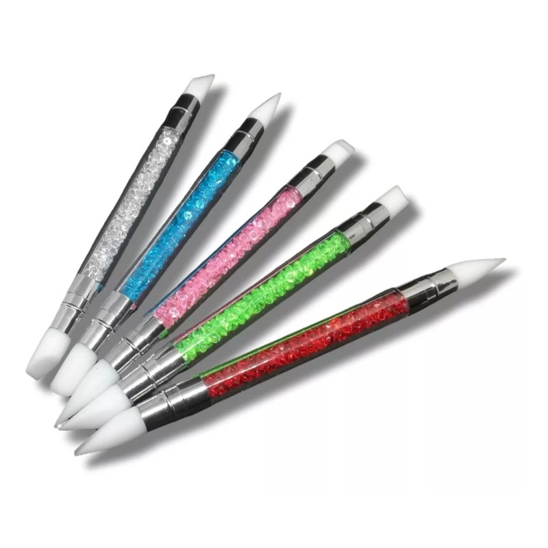 Kit De 5 Pinceles Doble Punta Silicon Para Uñas Fondant Art