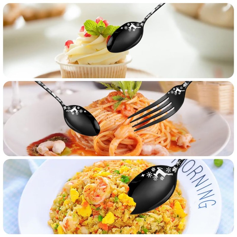 - 【Flatware Set Service for 4】20 pieces Christmas silverware set includes 4 each, 4 dinner knives, 4 dinner spoons, 4 dinner forks, 4 teaspoons, 4 salad forks, the perfect gift for Christmas, Thanksgiving, and housewarming.