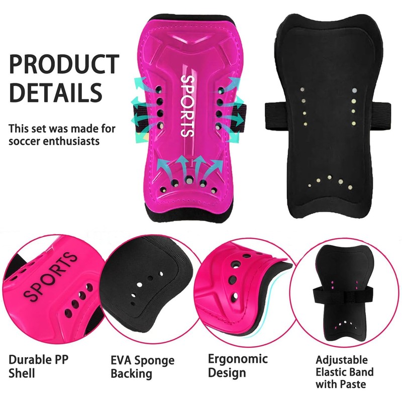 Soccer Shin Guards:High quality EVA, comfortable to wear, improved shock-resistant capability.Lightweight and high-strength PE housing, more protective, impressivelyreduce the impact on leg bones and muscles during rigorous exercises or games.